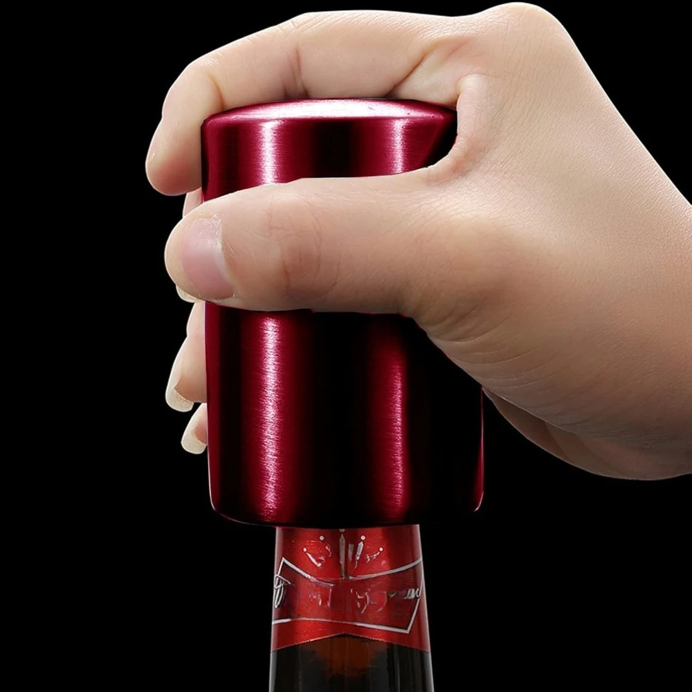 Just place this automatic bottle opener on the bottle cap, press it down to the end, and then pop it off. The cap is easily removed from the bottle even with one hand ! Perfect for removing the cap of beer, soda and glass bottle.